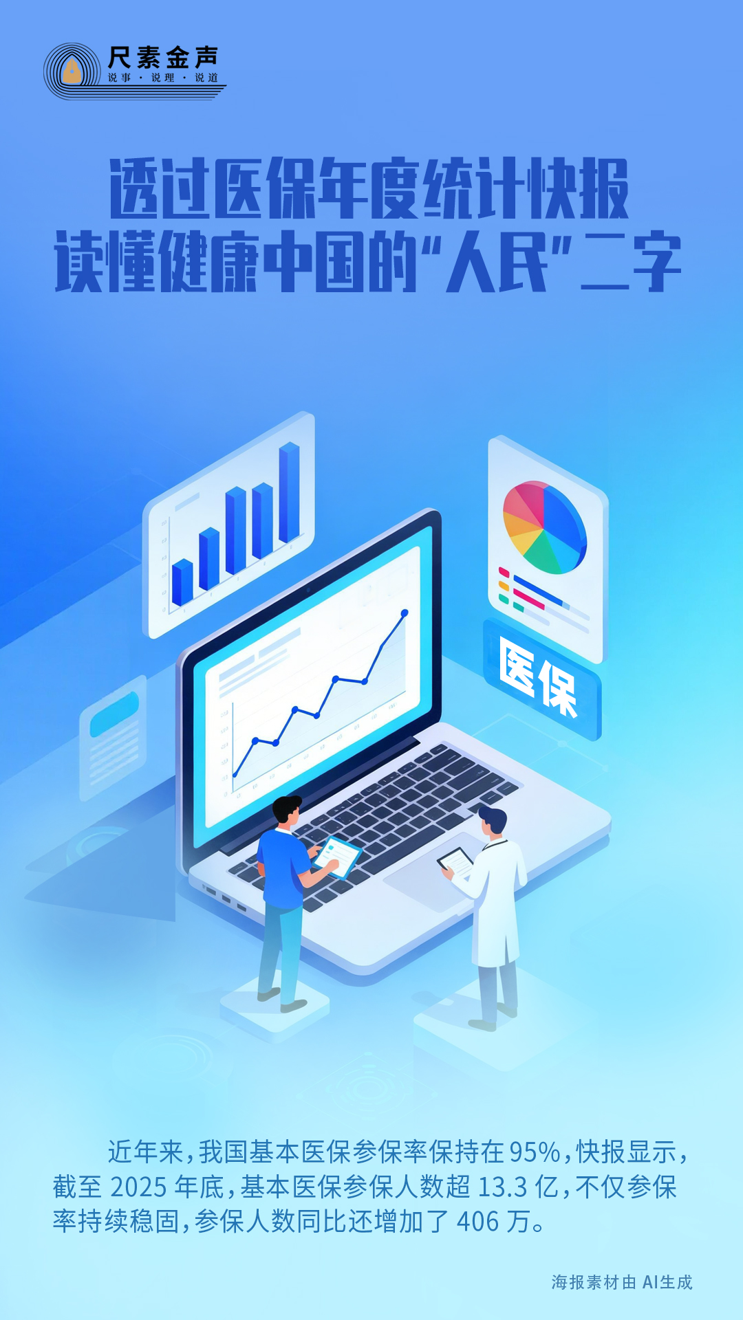 “健全多层次医疗保障体系,完善异地就医结算”“提高灵活就业人员、农民工、新就业形态人员参保率”“深化医保支付方式改革,优化结余资金使用,完善不同层级医疗机构差异化支付政策,减轻参保者个人费用负担,提高医保基金使用效率”“基本实现基本医疗保险省级统筹”,“十五五”规划纲要为医保事业未来五年发展指明了方向。快报数据传递了对未来工作的信心,从中能够感悟到健康中国的“人民”二字。13.3亿基本医保参保人有理由期待,未来五年,为全体人民解除疾病医疗后顾之忧的步伐将更加坚实有力!
